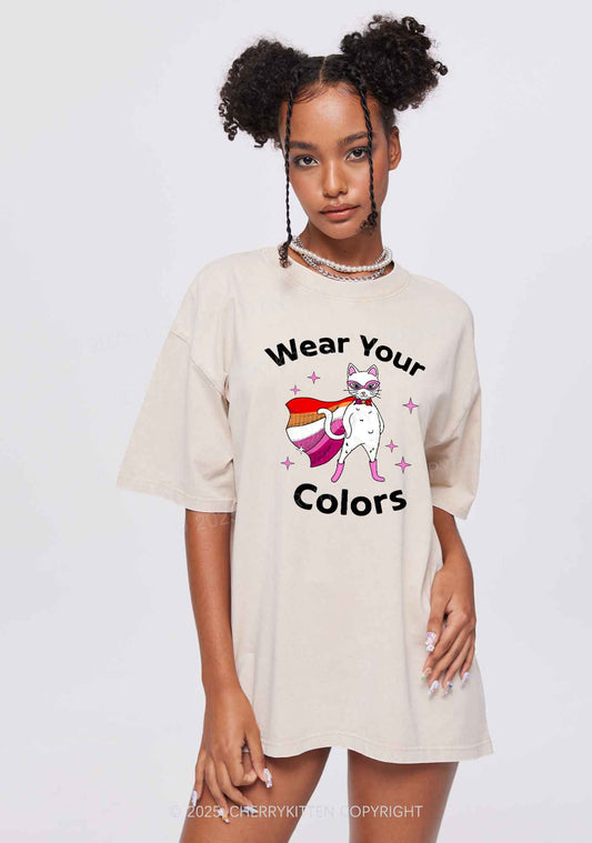Lesbian Flag Cat Pride Y2K Shirts Washed Tee Cherrykitten