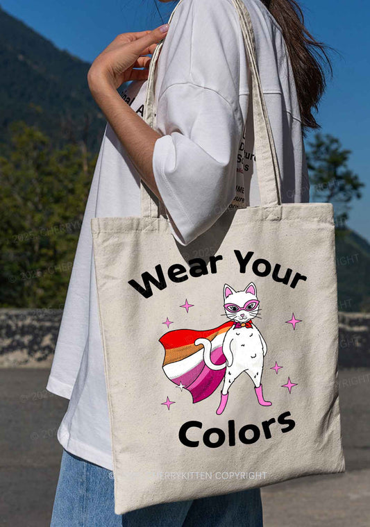 Lesbian Flag Cat Pride Y2K Canvas Tote Bag Cherrykitten