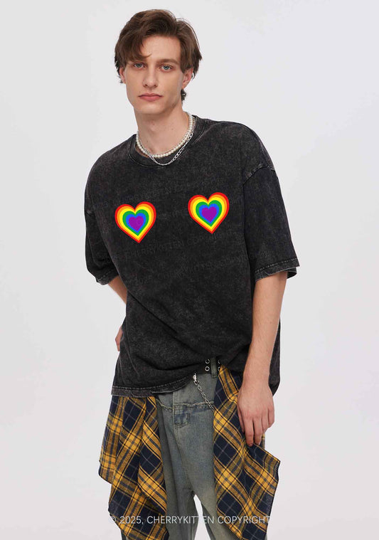 Rainbow Heart Pride Y2K Shirts Washed Tee Cherrykitten