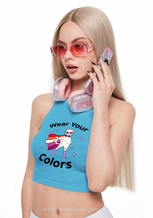 Lesbian Flag Cat Pride Y2K Crop Tank Top Cherrykitten