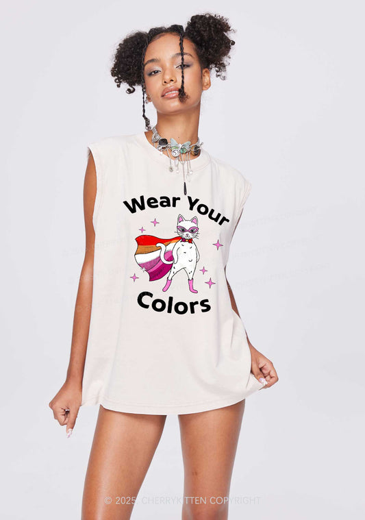 Lesbian Flag Cat Pride Y2K Washed Muscle Tank Cherrykitten
