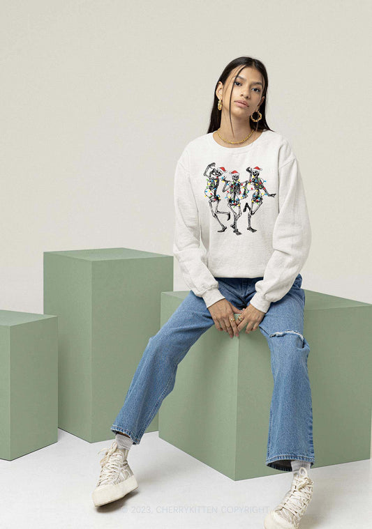 Christmas Dancing Skeletons Y2K Sweatshirt Cherrykitten