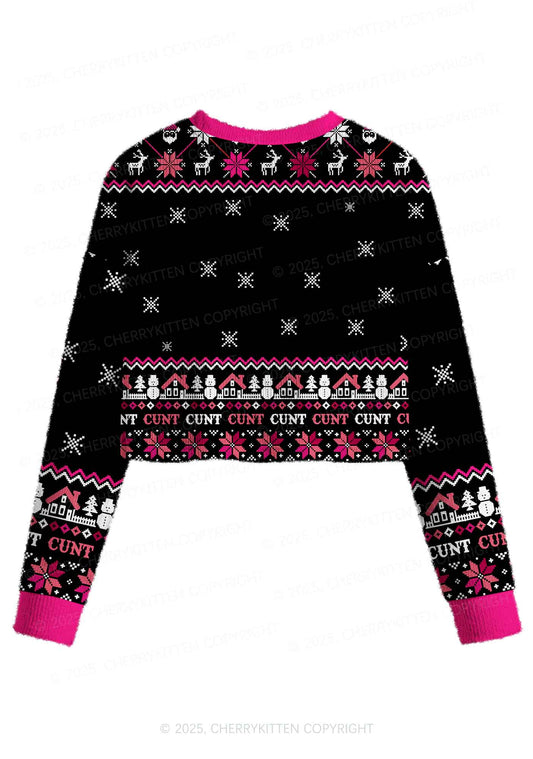 Santa Thinks Youre A Cxxt Y2K Christmas Crop Knit Sweatshirt Cherrykitten