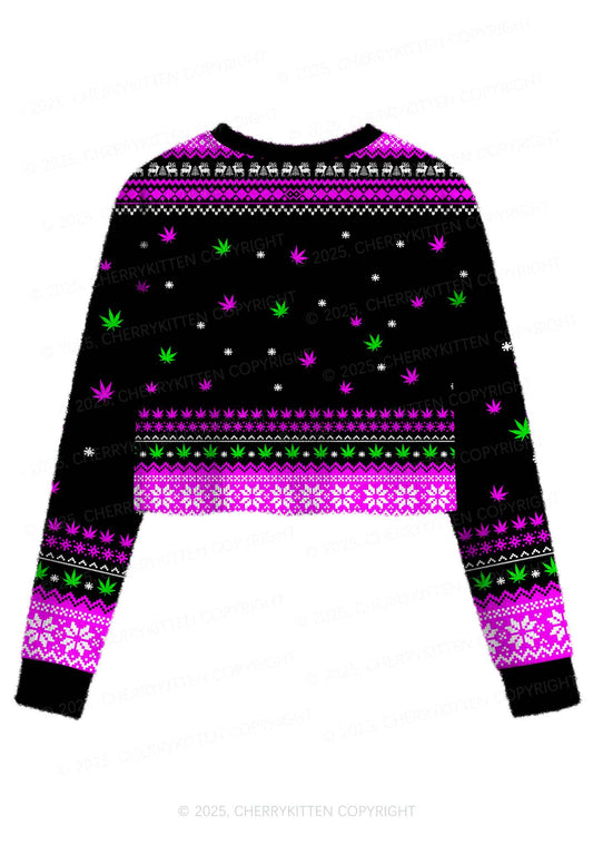 Smoke Blunt Wxxd Y2K Christmas Crop Knit Sweatshirt Cherrykitten