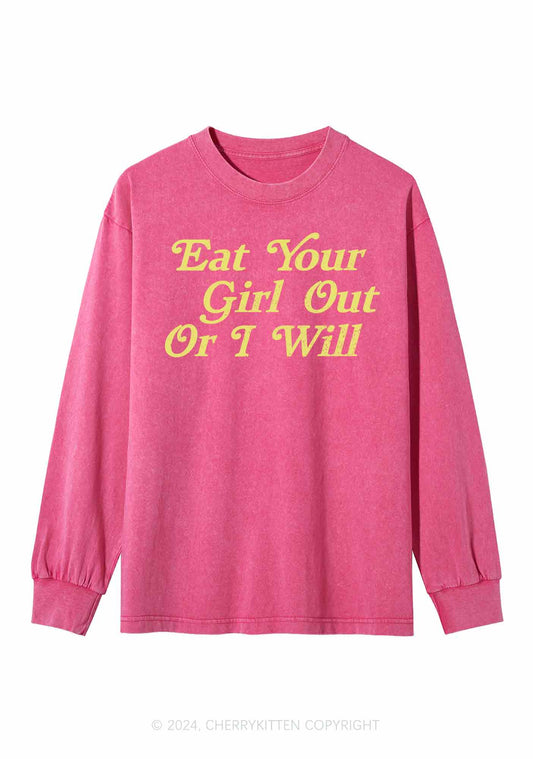 Eat Your Girl Out Y2K Washed Long Sleeves Cherrykitten