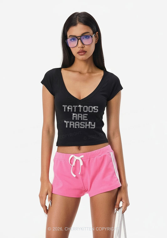Rhinestone Tattoos Are Trashy Y2K V Neck T Shirts Cherrykitten