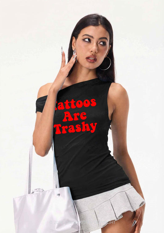 Tattoos Are Trashy Y2K Off Shoulder Tank Top Cherrykitten