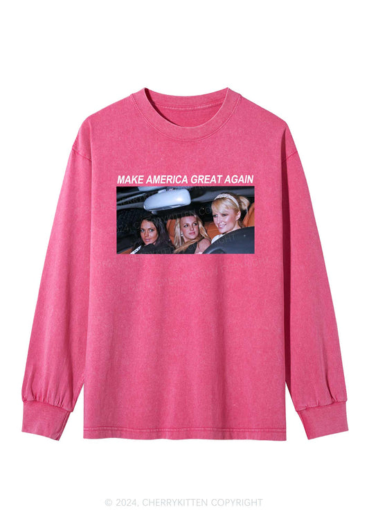 Make America Great Again Y2K Washed Long Sleeves Cherrykitten