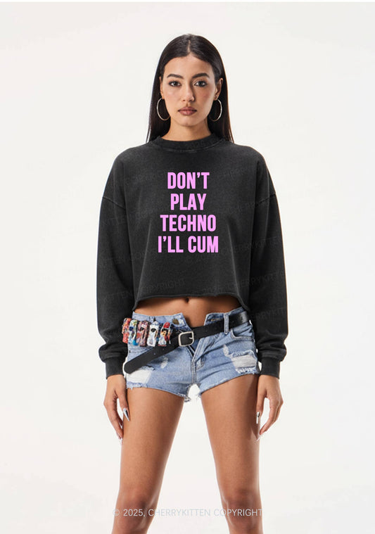 Dont Play Techno Y2K Crop Washed Sweatshirts Cherrykitten