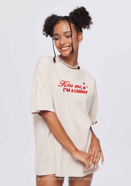 Kiss Me Im Lesbian Pride Y2K Shirts Washed Tee Cherrykitten