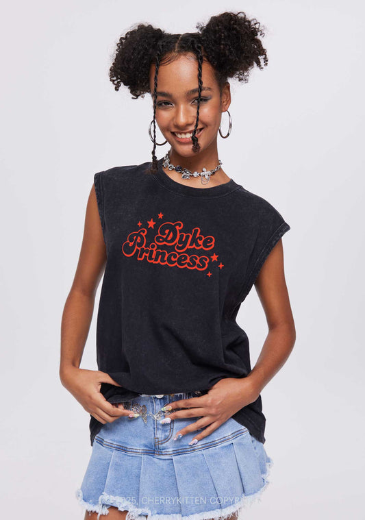 Dyke Princess Pride Y2K Washed Muscle Tank Cherrykitten