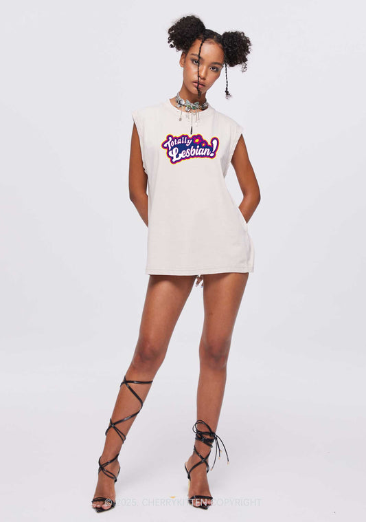 Totally Lesbian Pride Y2K Washed Muscle Tank Cherrykitten