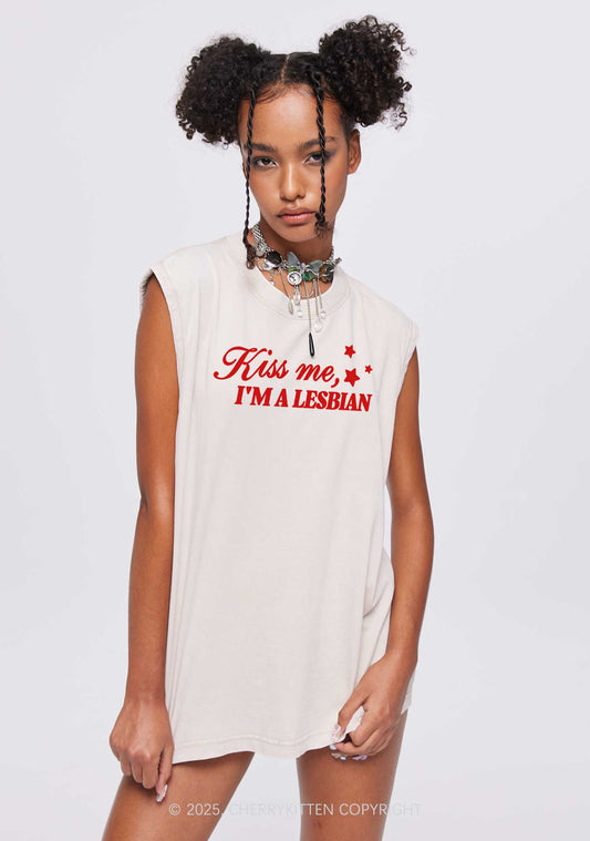 Kiss Me Im Lesbian Pride Y2K Washed Muscle Tank Cherrykitten