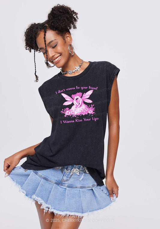 I Wanna Kiss Your Lips Pride Y2K Washed Muscle Tank Cherrykitten