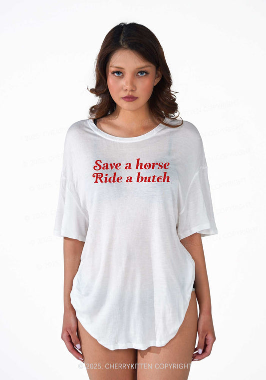 Save Horse Ride Butch Pride Y2K Sheer Boyfriend Tee Cherrykitten