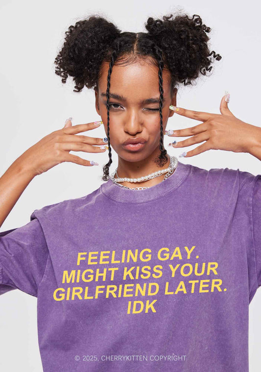 Kiss Your GF Later Pride Y2K Shirts Washed Tee Cherrykitten