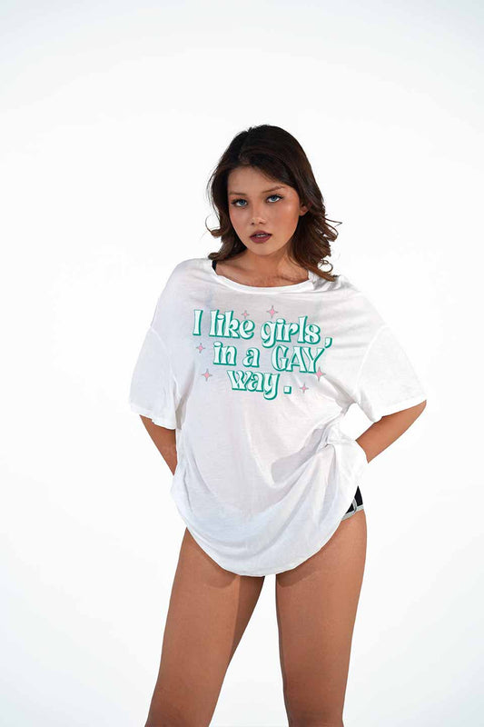 Like Girls In Gay Way Pride Y2K Sheer Boyfriend Tee Cherrykitten
