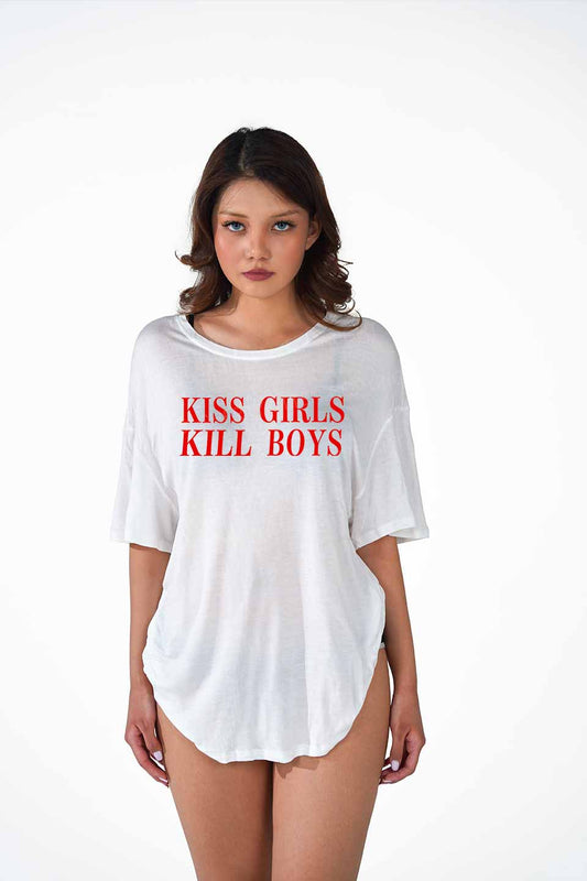 Kiss Girls Pride Y2K Sheer Boyfriend Tee Cherrykitten