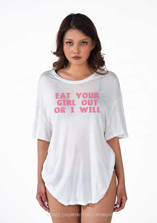 Eat Your Girl Out Pride Y2K Sheer Boyfriend Tee Cherrykitten