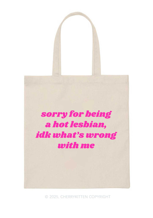 Sorry For Being Hot Lesbian Pride Y2K Canvas Tote Bag Cherrykitten