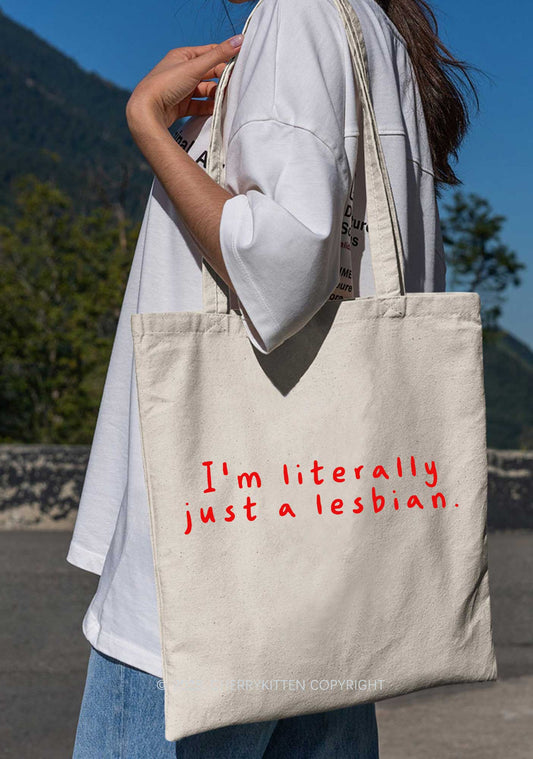 Just A Lesbian Pride Y2K Canvas Tote Bag Cherrykitten