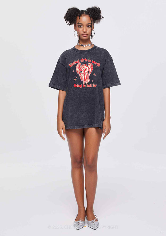 Kissing Girls To Hell Pride Y2K Shirts Washed Tee Cherrykitten