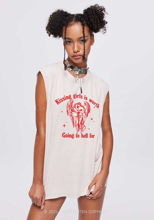 Kissing Girls To Hell Pride Y2K Washed Muscle Tank Cherrykitten