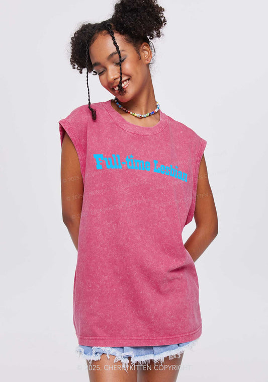 Full Time Lesbian Pride Y2K Washed Muscle Tank Cherrykitten