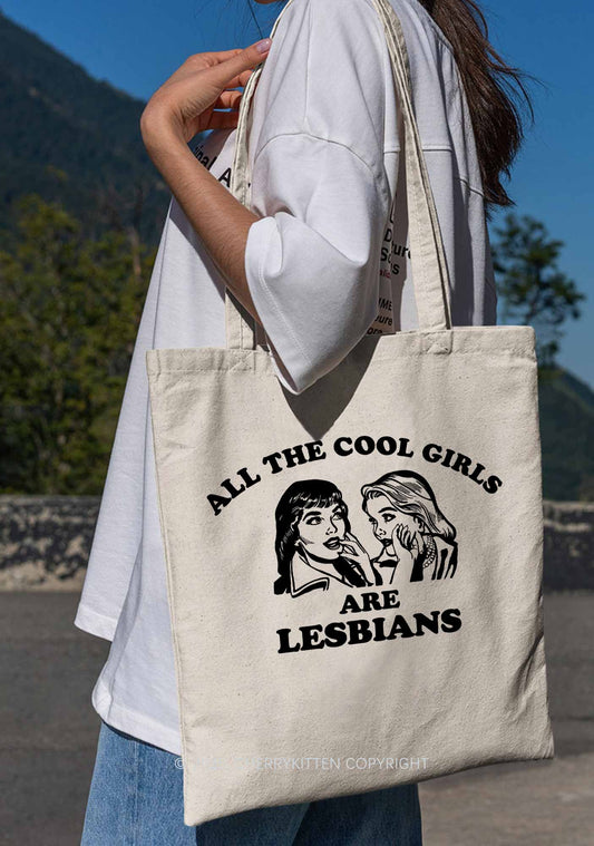 Cool Girls Lesbians Pride Y2K Canvas Tote Bag Cherrykitten
