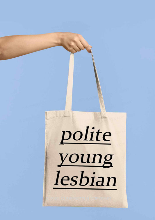 Polite Young Lesbian Pride Y2K Canvas Tote Bag Cherrykitten
