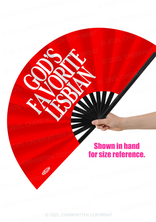 Gods Favorite Lesbian Pride Y2K Rave Hand Fan Cherrykitten