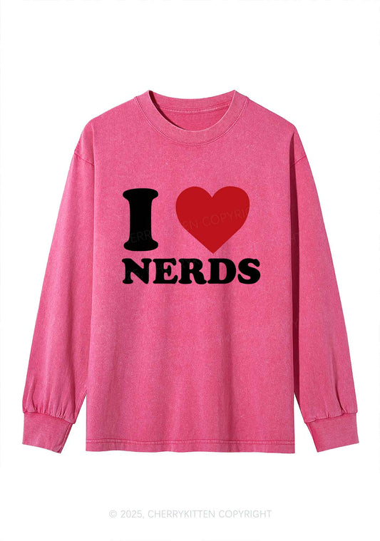 I Love Nerds Y2K Washed Long Sleeves Cherrykitten