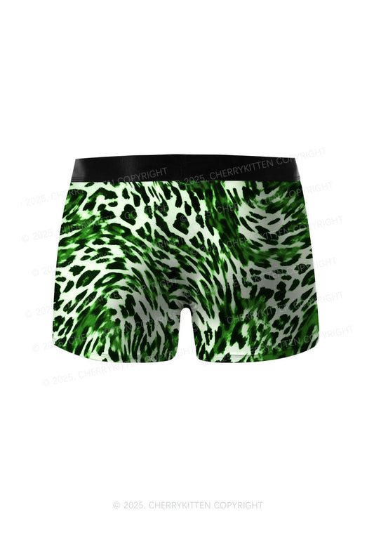Retro Green Leopard St Patricks Y2K Print Men Boxer Briefs Cherrykitten