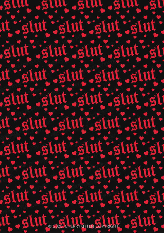 Slxt Red Heart Y2K Mesh Slip Dress With Scarf Set Cherrykitten