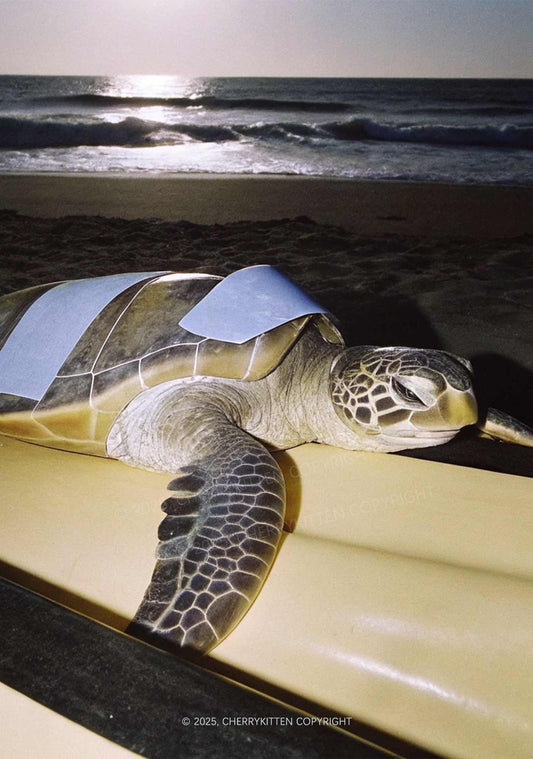 Turtle On Surfboard Y2K Mesh Crop Top Cherrykitten