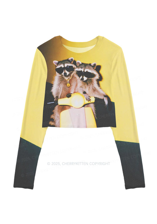 Raccoon Riders Y2K Mesh Long Sleeve Crop Top Cherrykitten