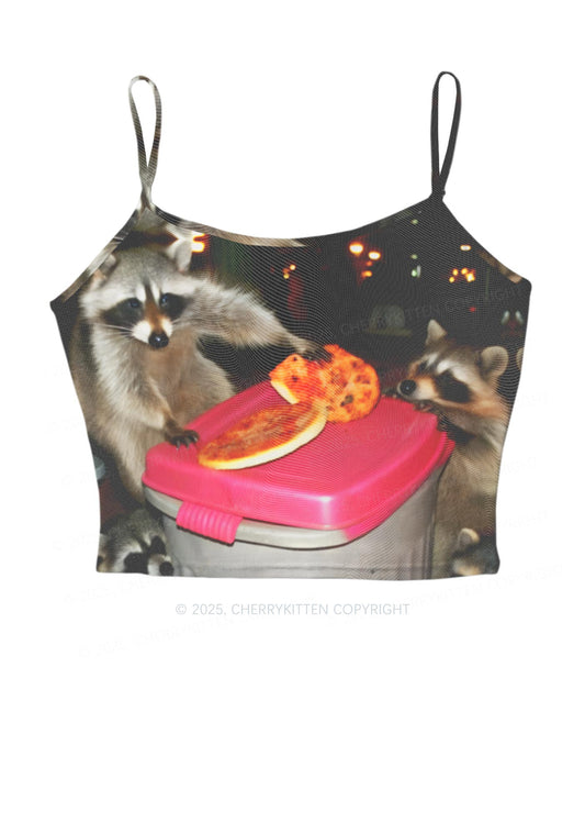 Raccoons Pizza Party Y2K Mesh Cami Tank Cherrykitten