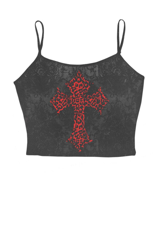 Dark Leopard Cross Y2K Mesh Cami Tank Cherrykitten