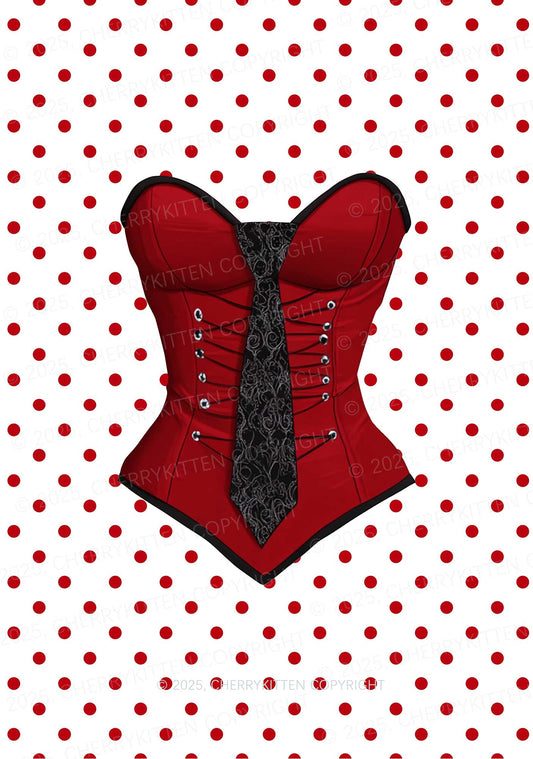 Dots Red Corset Y2K Mesh Crop Top Cherrykitten