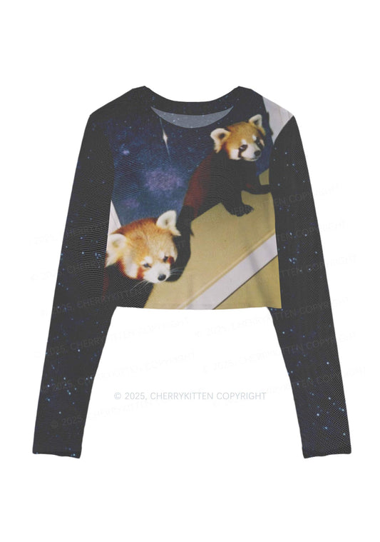 Red Panda Smoke Y2K Mesh Long Sleeve Crop Top Cherrykitten