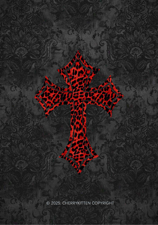 Dark Leopard Cross Y2K Mesh Crop Top Cherrykitten