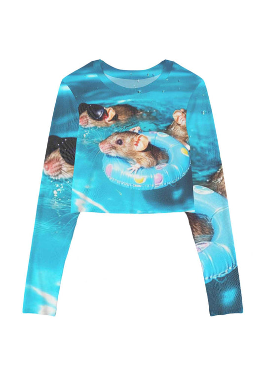 Pool Rats Y2K Mesh Long Sleeve Crop Top Cherrykitten