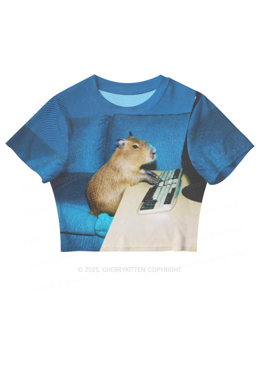 Keyboard Capybara Y2K Mesh Crop Top Cherrykitten