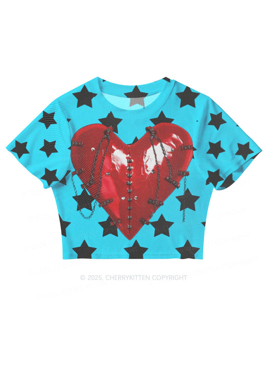 Punk Red Heart Y2K Mesh Crop Top Cherrykitten