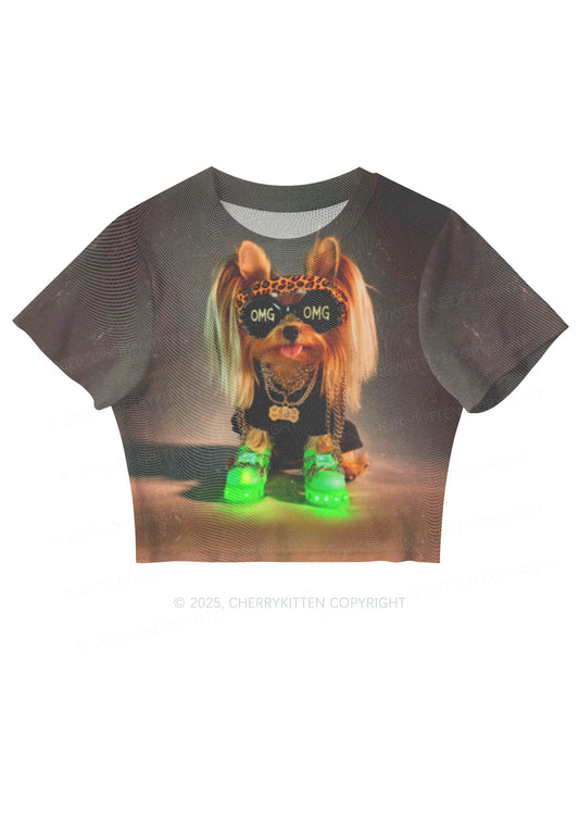 OMG Doggy Y2K Mesh Crop Top Cherrykitten