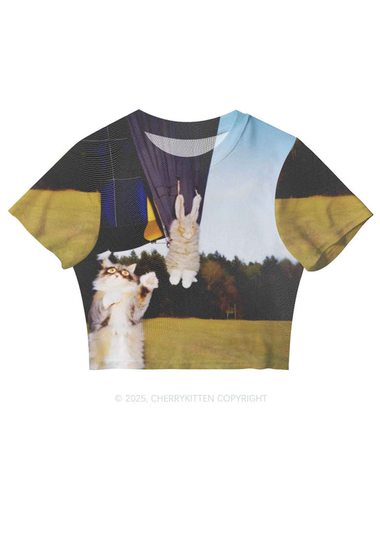 Rats Party Y2K Mesh Crop Top Cherrykitten