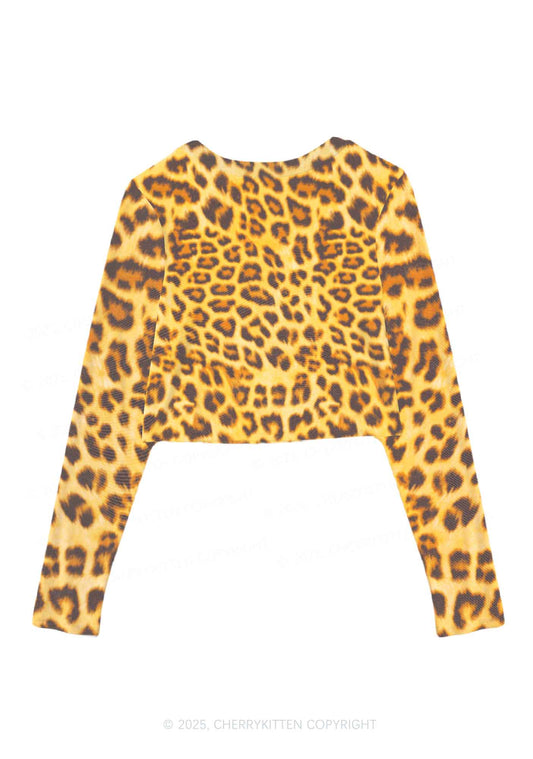 Brown Leopard Y2K Mesh Long Sleeve Crop Top Cherrykitten