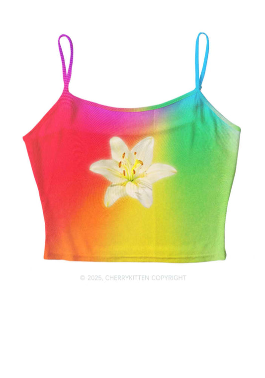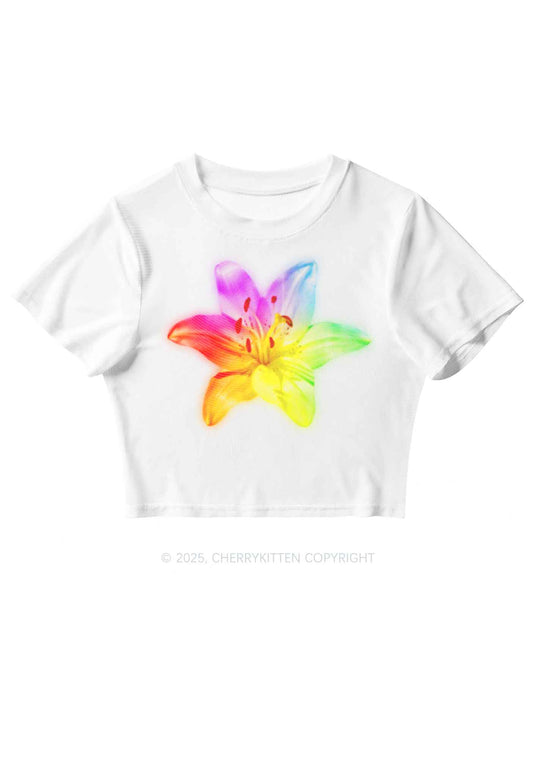 Rainbow Lily Pride Y2K Mesh Crop Top Cherrykitten