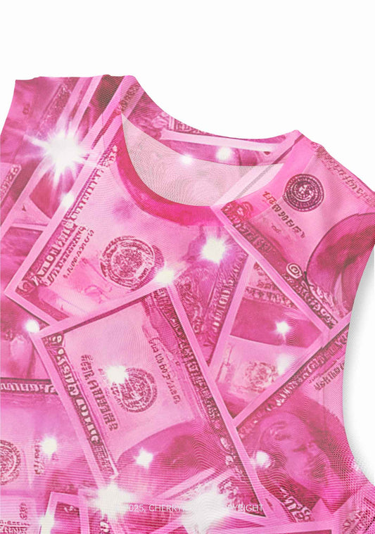 Pink Shiny Money Y2K Mesh Muscle Tank Cherrykitten