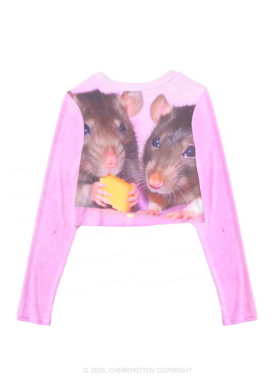 Cheese Rat Y2K Mesh Long Sleeve Crop Top Cherrykitten